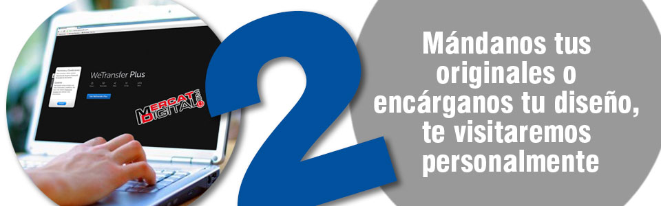 Envíanos tus originales en formato PDF por wetranfer, o si lo deseas, nosotros nos cuidaremos de realizar el diseño, en este caso nos pondremos en contacto contigo personalmente.